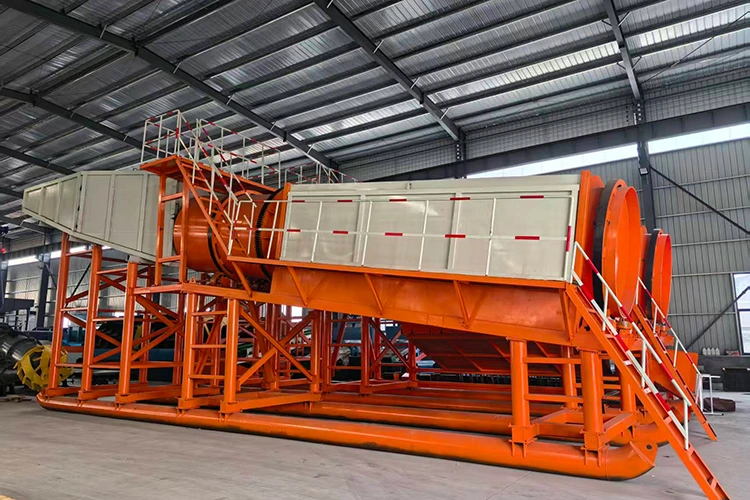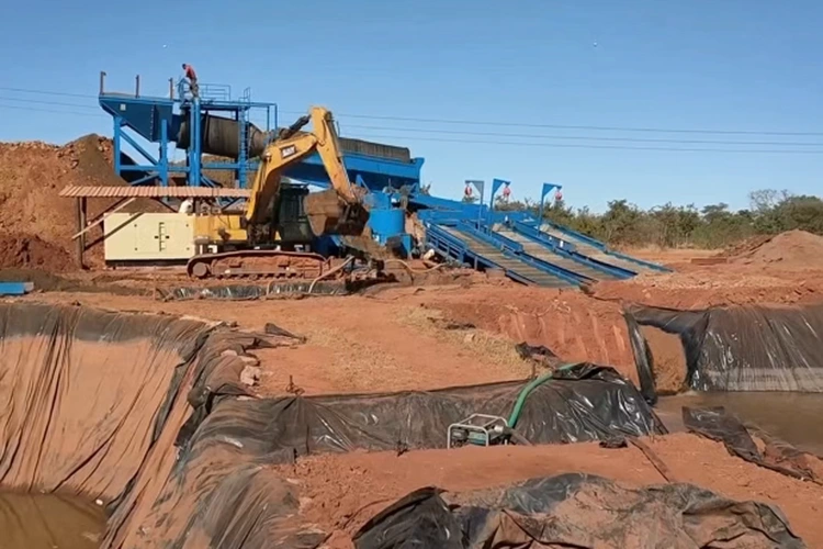 मोबाईल गोल्ड मायनिंग प्लांट: हे लवचिक पुनर्स्थापना वैशिष्ट्यीकृत, जमीन-आधारित प्लेसर सोन्याच्या खाणकामासाठी मुख्य उपकरणे आहे. हे फीडिंग, स्क्रीनिंग आणि गोल्ड सेपरेशनची पूर्ण-प्रक्रिया कार्ये एकत्रित करते. ट्रॉमेल स्क्रीनद्वारे दगड काढून टाकल्यानंतर, स्ल्यूस बॉक्स आणि सेंट्रीफ्यूगल कॉन्सन्ट्रेटर्स सारख्या उपकरणांद्वारे धातूची स्लरी वेगळी केली जाते.
